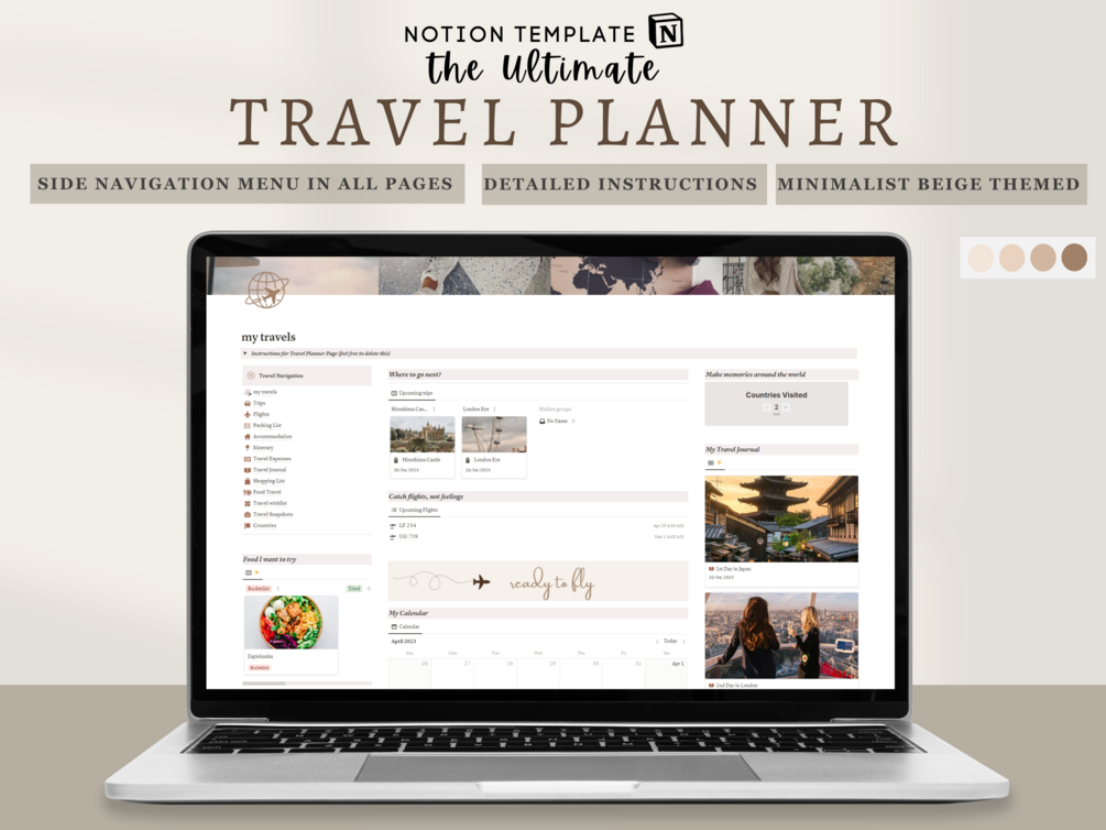 Travel Planner Notion Template Beige | Vacation Planner Notion Trip Planner Travel Journal Notion Holiday Planner Travel Organizer Digital Planner Notion Template
